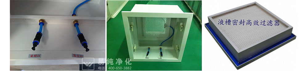 高效過濾器本身的過濾效率一般由生產廠家檢測,出廠時附有濾器過濾效率報告單和合格證明。對制藥企業來說,高效過濾器檢漏是指高效過濾器及其系統安裝后的現場檢漏,主要是檢查過濾器濾材中的小針孔和其他損壞,如框架密封、墊圈密封以及過濾器構架上的漏縫等。檢漏的目的是通過檢查高效過濾器及其與安裝框架連接部位等處的密封性,及時發現高效過濾器本身及安裝中存在的缺