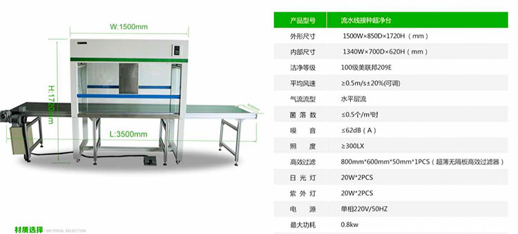 一半以上的客戶選擇食用菌專用流水線接種超凈工作臺(tái),它有怎樣的優(yōu)勢(shì)呢?1、食用菌專用流水線接種超凈工作臺(tái)設(shè)備總長(zhǎng)為:3500*620*1720,其中超凈工作臺(tái)的尺寸為:1500mm*800mm*1720mm,這樣設(shè)計(jì)的原因是為了更好的適用食用菌生產(chǎn)工藝的流程。2、食用菌專用流水線接種超凈工作臺(tái)采用軟觸點(diǎn)控制面板開(kāi)關(guān),三擋調(diào)速。3、皮帶末端裝有光電感應(yīng),已接種好的菌種不易滑落至地面。4、設(shè)備內(nèi)有紫外線和照明燈,開(kāi)關(guān)獨(dú)立控制。5、200W國(guó)產(chǎn)渦輪蝸桿電機(jī),速比:1:10,變頻調(diào)速,速度2-6 m/min。6、單間輸送產(chǎn)品4KG/件。7、流水線采用電柜箱控制,分為腳踏按鈕和手動(dòng)按鈕開(kāi)關(guān)控制,設(shè)計(jì)更人性化。8、皮帶寬度530mm,厚度2mm,綠色防靜電皮帶,皮帶托輥采用304不銹鋼滾筒。